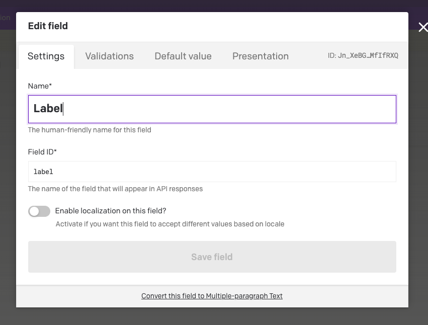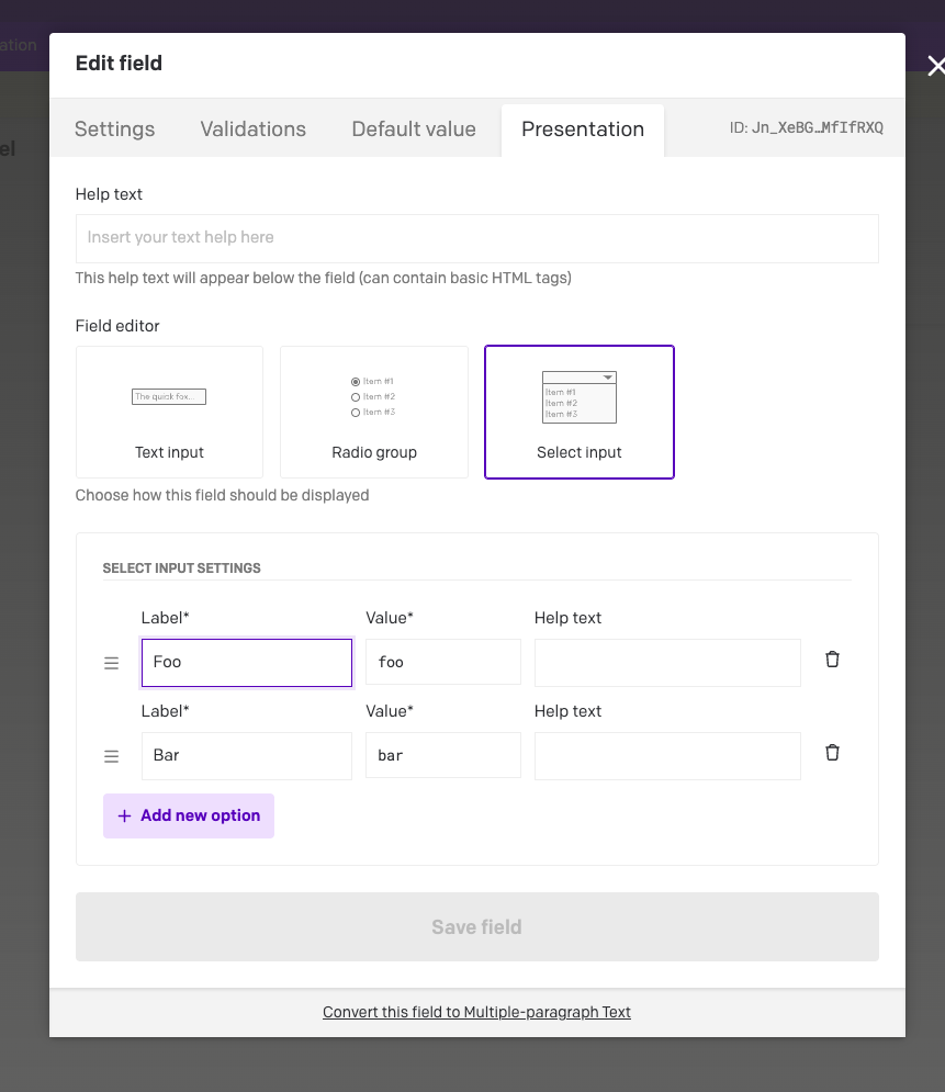 When exporting a model containing single-line string fields containing radio group settings/select input settings options, these options are not being imported.