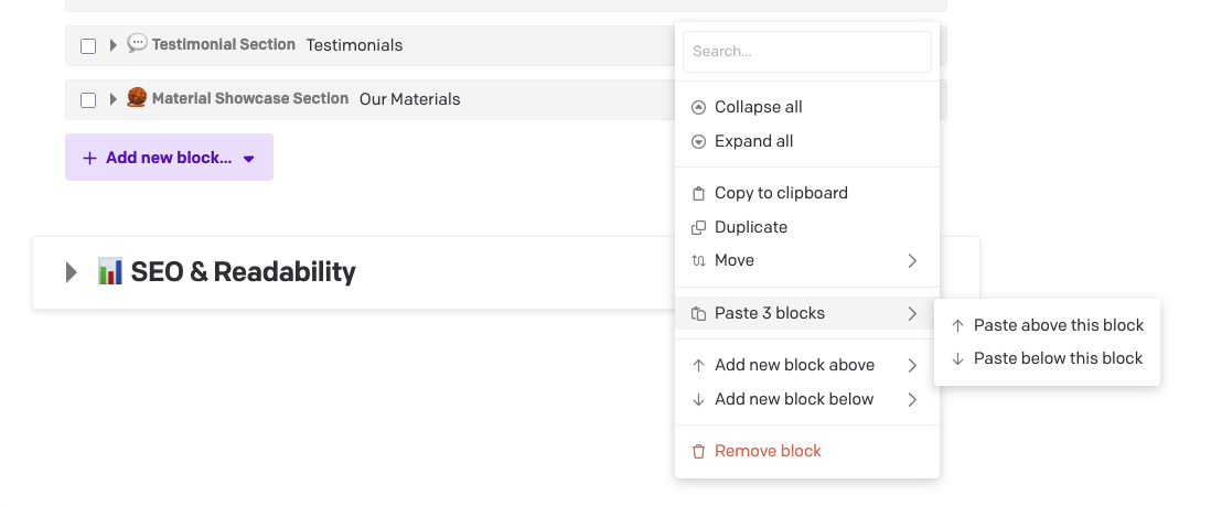 Hi there. We are allowed to copy and paste 1 block at a time using this: