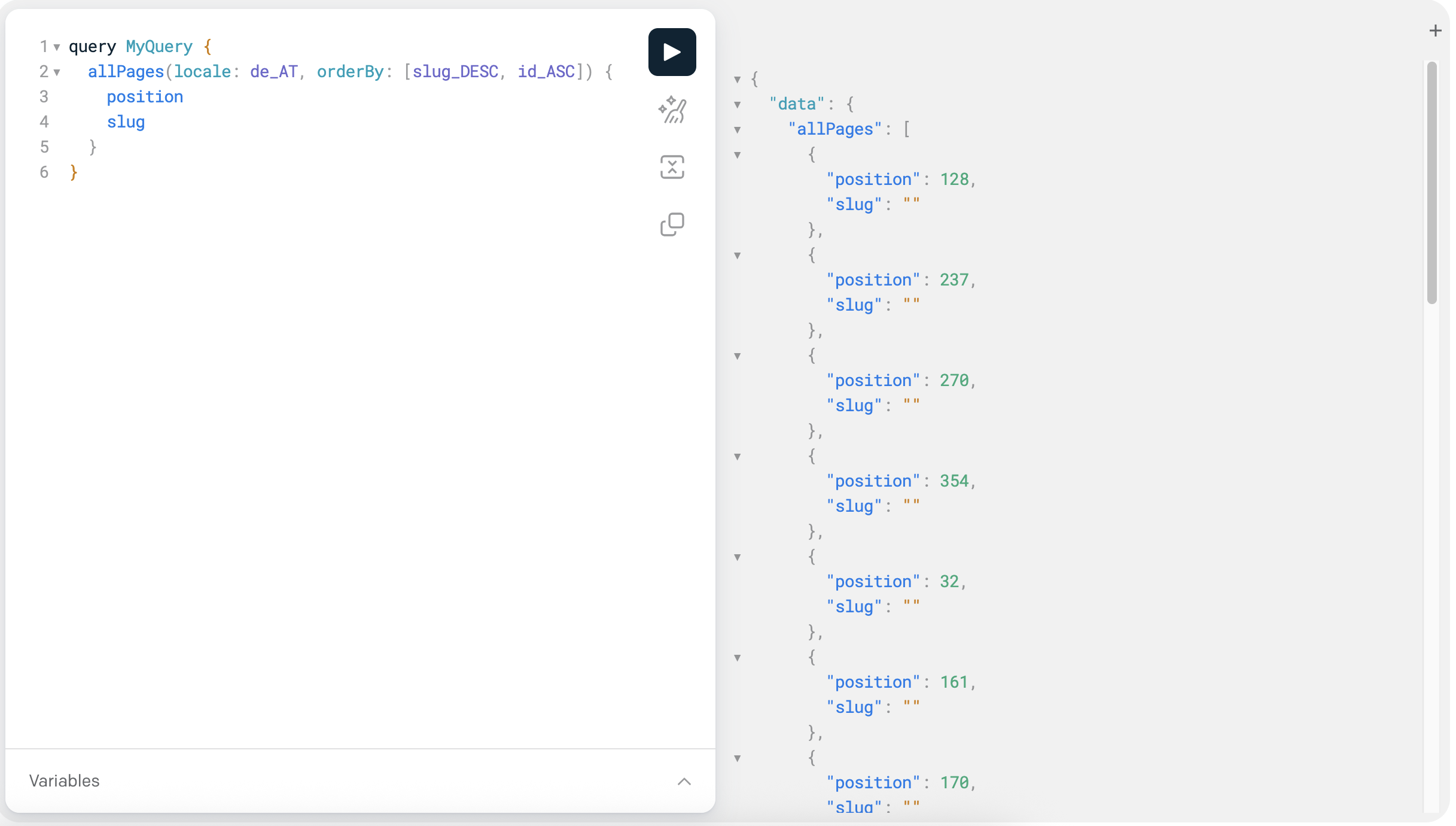 To be clear, Gatsby consolidates one or more external endpoints and puts it into its own data layer, using its own syntax and schema. Thatâs why the queries are different. In your particular case, something is wrong in that data layerâs translation process, but I cannot say what without seeing the code.