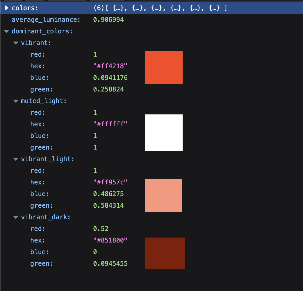 In this image the actual dominant colour should be a light grey as that colour takes up most of the image, but there’s no way to sort the colours returned so that the grey hex colour is first - unless there is and I’m oblivious to it!