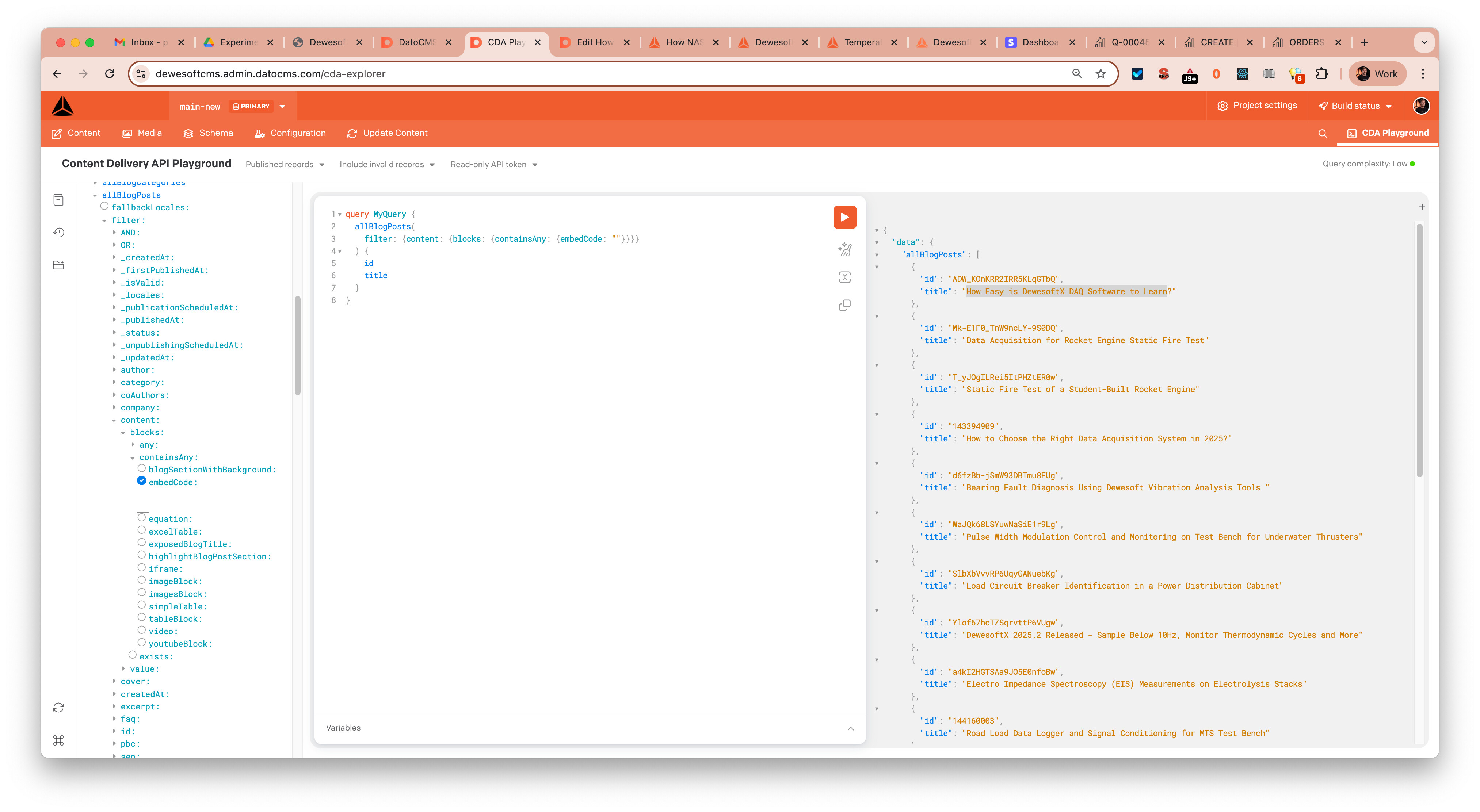 Seems promising, but don’t know how exactly setup filter to get the right result… For example I would like to find all blog posts that include “embedCode” block… This gives me some result but none of these posts include this block.