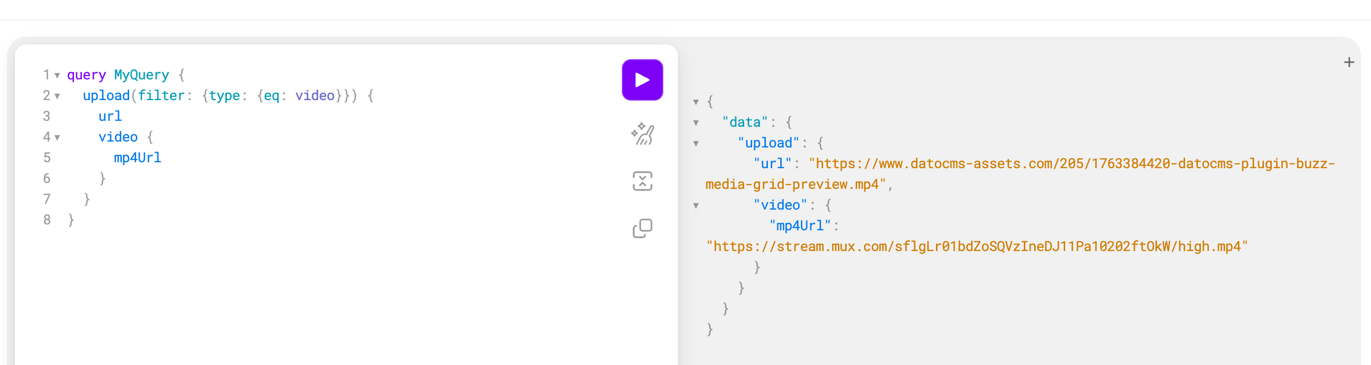 In my GraphQL query, Iām requesting the mp4Url for a video field. I do get an .mp4 URL back, but it still looks like this: